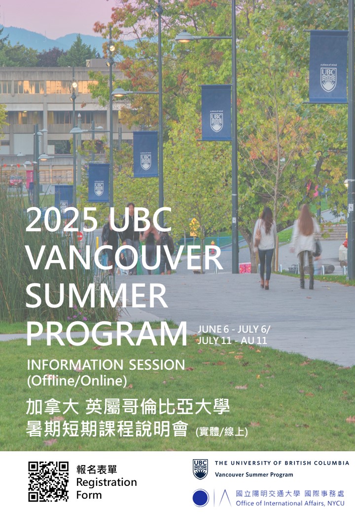 此場說明會將由UBC相關代表赴本校介紹此暑期課程,有興趣的同學千萬別錯過囉!