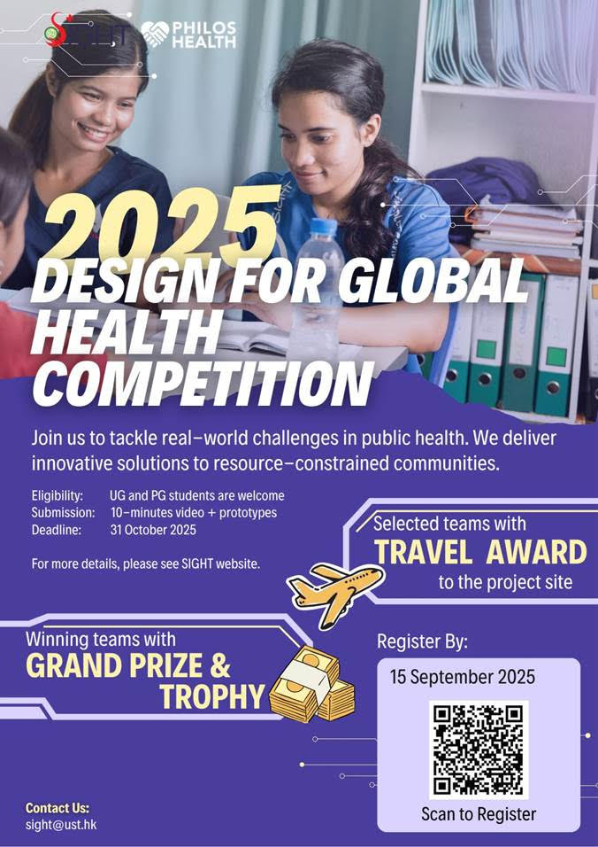 We are pleased to share the “Design for Global Health” competition organized by the SIGHT program at HKUST, in collaboration with Philos Health (USA).